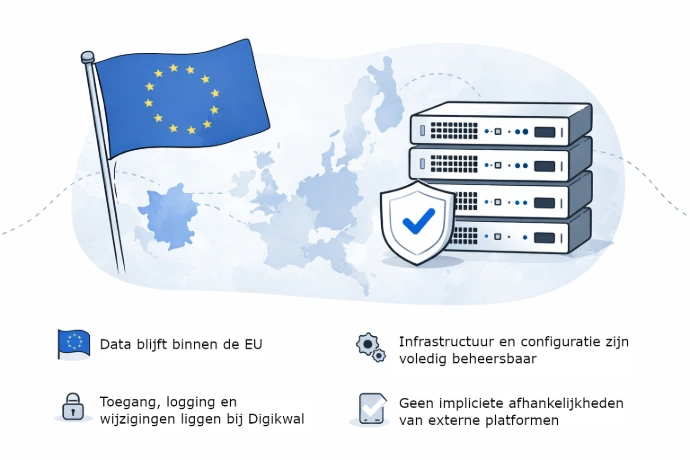 We kiezen bewust niet voor oplossingen waarbij we geen grip hebben op configuratie, toegang of datastromen.